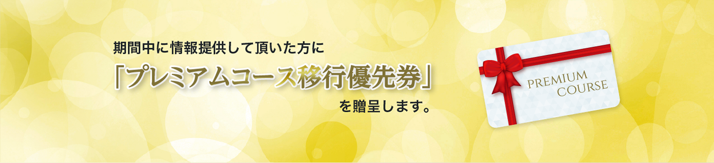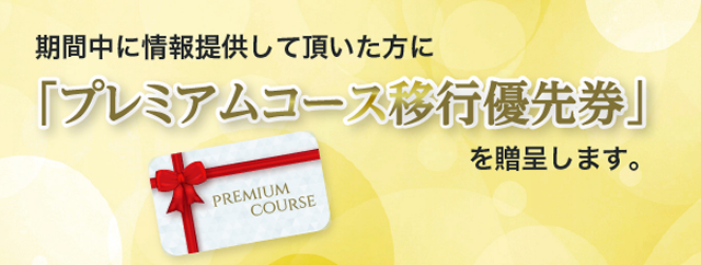 プレミアムコースへ入会・移行したいとのお声をたくさん頂き「既存の会員様を第一に」の下、ご愛顧、ご協力頂いている会員様が最優先に待遇されるようキャンペーンを開始しました。